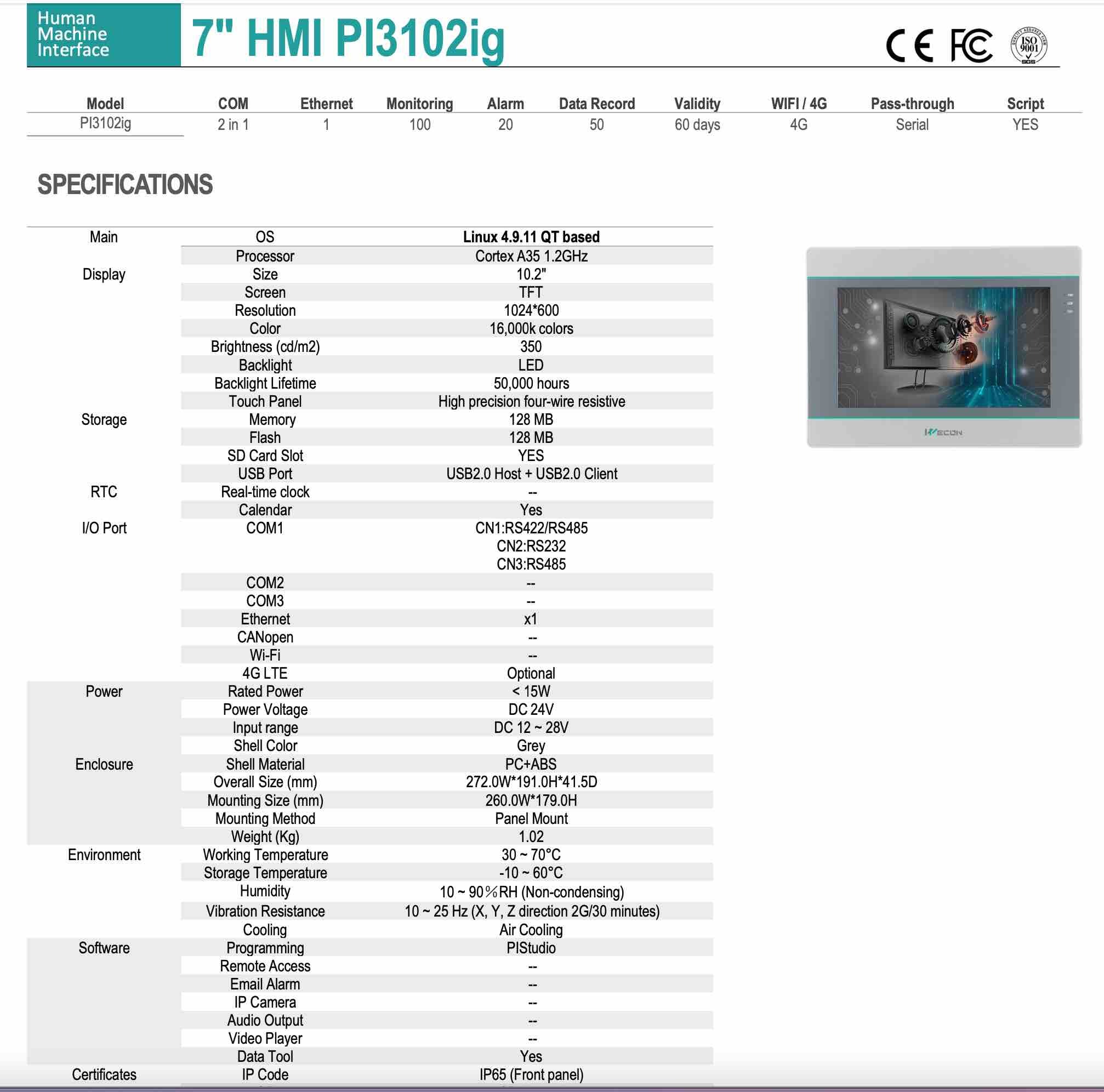 - All HMI screens from ig Series are IIoT ready with "MQTT service" and "HTTPS request" service supported via Lua Script. Can be used for data logging via MQTT or HTTPS service.
